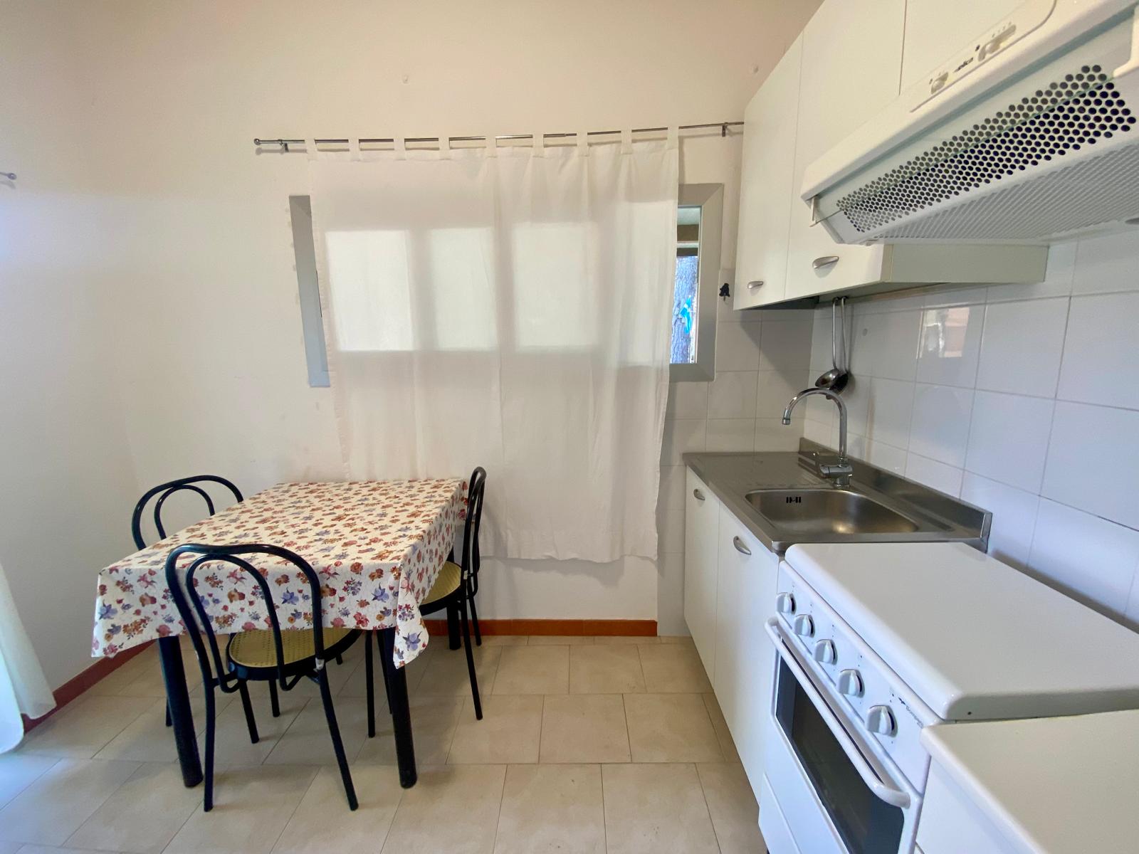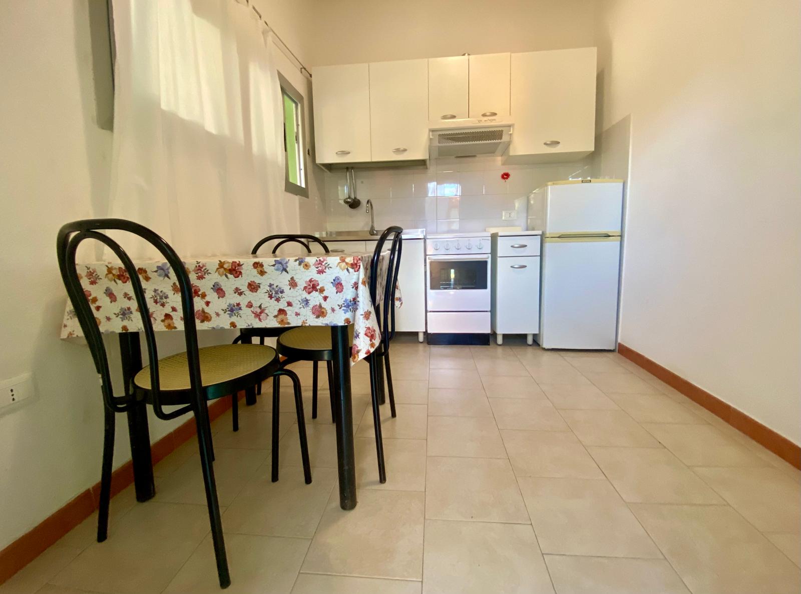 Trilocale – 2 camere da letto: 1 camera con letto matrimoniale, 1 camere letto con 1 letto a castello, Soggiorno con angolo cottura attrezzato, completo di stoviglie, Soggiorno con divano utilizzabile a letto singolo, n° 1 Bagni con Wc e doccia di cui uno con bidet.