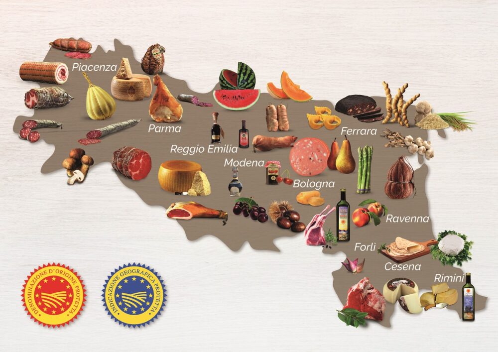 I cappelletti, i passatelli, la mortadella, le tagliatelle al ragù bolognese, la fresca piadina romagnola, lo stracchino, sono solo alcuni dei prodotti tipici della nostra regione.